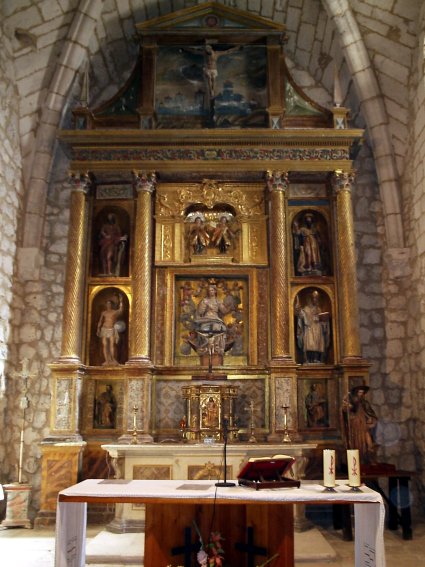 Este retablo, fechado a principios del siglo XVII, fue labrado por los escultores palentinos Lucas Sanz de la Torrecilla y Pedro Martínez, y cuenta con imágenes de la Asunción, San Sebastián, San Martín, San Roque, San Juan Bautista, San Pedro y San Pablo, todas ellas de buena factura.