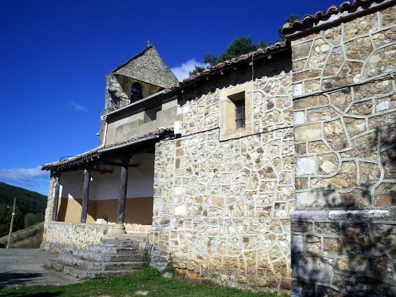 En cuanto a la iglesia, esta misma página web nos informa de que ésta se encuentra emplazada sobre un altozano que domina al caserío a modo de atalaya sobre el valle del Esla, posiblemente ocupando el solar de una antigua fortaleza. La bóveda del altar mayor y la espadaña son del siglo XVI, y tras sufrir un incendio en 1970 fue reparada un año más tarde en forma que la página califica de desafortunada.