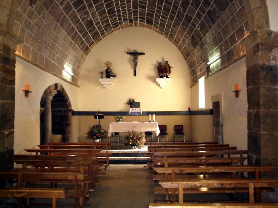 En la ficha de la antigua base de datos del PIC (Puntos de información cultural) figura como siglo más relevante de la iglesia el XIII, es decir, románico, con elementos renacentistas del XVI y otros del siglo XX, supongo que los desafortunados arreglos de 1971. La cabecera es recta, cubierta con una bóveda de cañón ligeramente apuntada. Un arco toral la separa de la nave de la iglesia, de techo raso. La cubierta del edificio es un tejado a dos aguas.