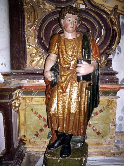 Lamentablemente sólo se conserva una imagen de los Santos Niños, sin que haya podido determinar qué pasó con su compañera. Se trata de una talla de estilo renacentista y de notable valor artístico, donde se ve al niño mártir -no he podido determinar cual de los dos hermanos es- ataviado a la romana, con túnica y capa larga y un libro en la mano, faltándole la palma del martirio en la otra, aunque puede que ésta existiera originalmente dada la posición de la mano derecha.