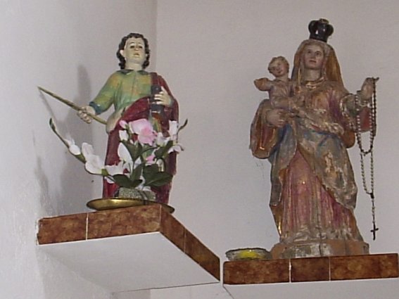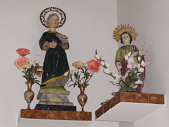 Pese a haber perdido el patronazgo a expensas de santa Lucía, en la parroquia se conservan sendas imágenes de los Santos Niños, tal como puede apreciarse en las fotografías. Aunque no dispongo de una panorámica completa del interior del templo, todo parece indicar que la disposición del presbiterio debe de ser muy sencilla, con paredes encaladas y las imágenes de los Santos Niños, una a cada lado, flanqueadas respectivamente por una Virgen y santa Lucía, todas ellas sobre sencillas peanas de ladrillo. No resulta fácil datarlas dado su estilo popular, aunque no parecen ser recientes y responden a la iconografía clásica, es decir, vestidos más o menos a la romana. Curiosamente una de ellas conserva el nimbo, o aureola, en torno a la cabeza, mientras la otra ha perdido.