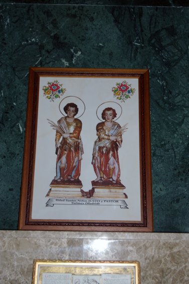 Y como tal tiene puesto todo su empeño en honrar a los Santos Niños Mártires Justo y Pastor, hermosos ciudadanos de ella y por la tradición nos consta y algún autor trae algún documento que la iglesia parroquial que tenemos fue la casa donde nacieron. Y el cerro pasado el río, hay una cueva en que se dice estuvieron ocultos con su madre por temor al tirano, al pie de éste venían antiguamente los pueblos circunvecinos la víspera de su martirio en procesión juntándose con esta parroquia en memoria de haber estado allí tan esclarecidos mártires; y la devoción de los vecinos ha edificado en este sitio una Ermita; a la que se va la víspera de la fiesta, y en ella se reparte caridad a toda la gente que concurre de todos los lugares circunvecinos.