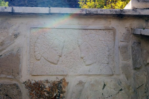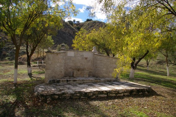 Fuera ya de la ermita, en el pequeño parque situado junto a ella, existe una fuente inaugurada, tal como reza en la inscripción existente en la misma, durante el año jubilar de 2005-2006. Lo más interesante de ella es sin duda el relieve tallado en piedra caliza en el que aparecen los bustos de los dos mártires, del cual no he podido averiguar quien fue su autor.
