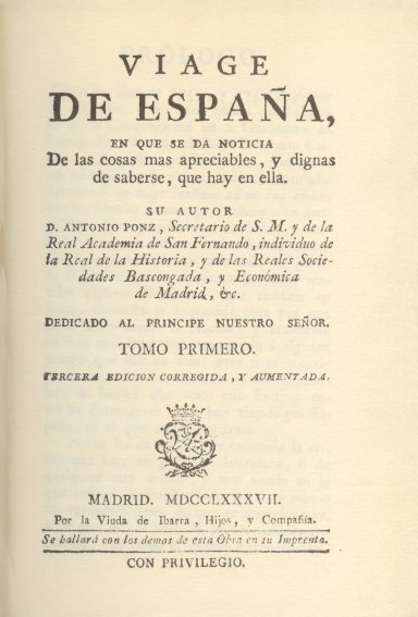 Antonio Ponz Piquer fue un sacerdote ilustrado, nacido en 1725 y fallecido en 1792, famoso por haber escrito su conocido Viage de España, un extenso libro de viajes -cuenta con 17 volúmenes, más uno póstumo- en el que describe con un lenguaje ágil y ameno su percepción de la España de su época, la cual recorrió por encargo de Campomanes a siguiendo un amplio periplo que, dado el deplorable estado de las vías de comunicación de entonces, no deja de tener un gran mérito.