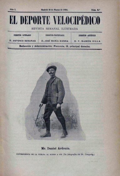 La revista se llamaba El deporte velocipédico -curioso arcaísmo-, y el ejemplar que me mandó Juan correspondía al número 3, fechado en Madrid el 23 de marzo de 1895. Era una revista semanal ilustrada -por lo general con grabados, junto con alguna fotografía- y, según indicaba la marca de agua, procedía de la hemeroteca digital de la Biblioteca Nacional, donde se conservan un total de 103 ejemplares publicados entre el 27 de febrero de 1895 y el 30 de diciembre de 1896, y en los que encontré otro artículo1 también dedicado a Alcalá.