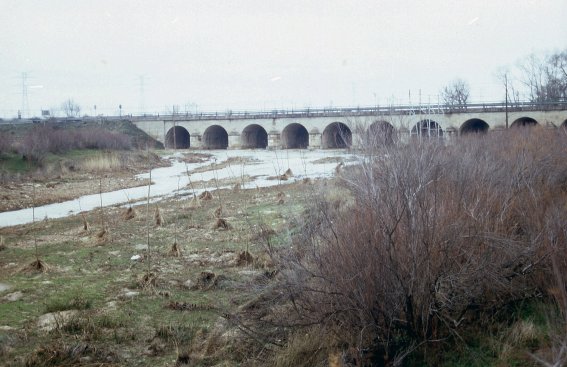 Kilómetro 26.- Ya en éste, y a la derecha, se ve un camino que conduce al Espinillo, posesión del Sr. Allende Salazar; y pasado un ventorro, que hay a la derecha también, se entra en el citado puente sobre el arroyo de Torote. Tiene diez ojos, y, según se lee en un pilar que junto a él se halla, mandólo edificar Carlos III, a consulta del Consejo, en 1776, a los arquitectos D. Hilario de Jórgenes y D. J. Eusebio de la Biesca, bajo la dirección de D. Marcos de Vierna, y fue costeado del pontazgo de Viveros.