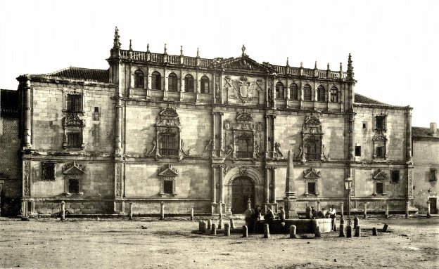 Universidad. Hizo Cisneros el Colegio Mayor de San Ildefonso en 1498, de ladrillo, para que sus sucesores lo hicieran de mármol. De aquí la inscripción olim lutea nunc marmorea. Fue el arquitecto Pedro Gumiel; hizo la fachada en 1543, en estilo de Renacimiento, Rodrigo Gil de Ontañón, quien acabó las obras de la Universidad en 1583. Visítese la capilla, con hermosas labores de Renacimiento y un gran artesonado mudéjar. En el presbiterio estuvo el sepulcro de Cisneros hasta 1850 en que se trasladó a la Magistral. El primer patio es greco-romano, de 1662; el segundo, sin acabar, es de Renacimiento, y el tercero, llamado trilingüe, es de 1551. En él se halla el Paraninfo, de 1518, con su bonita cátedra y tribunas del Renacimiento, pero malamente restaurado. Ocupan hoy el edificio los PP. Escolapios, que dan siempre permiso para visitar el monumento.