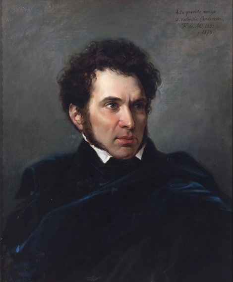 Valentín Carderera y Solano, nacido en Huesca el 14 de febrero de 1796 y fallecido en Madrid el 25 de marzo de 1880, fue un notable dibujante y pintor al que también se le considera arqueólogo, escritor y divulgador de las artes, lo cual no es poco. Deseando sus padres que siguiera la carrera eclesiástica le matricularon en la Universidad Sertoriana de su ciudad natal, en la que cursó estudios de Filosofía durante tres años hasta que, contando con la ayuda del general Palafox, que había visto en él unas dotes innatas para el dibujo, abandonó la Universidad trasladándose a Zaragoza para formarse como pintor. Años más tarde, en 1816, se desplazó a Madrid convirtiéndose en discípulo de Mariano Salvador Maella y de José de Madrazo, y en 1822 viajaría pensionado a Roma, donde permaneció durante nueve años.