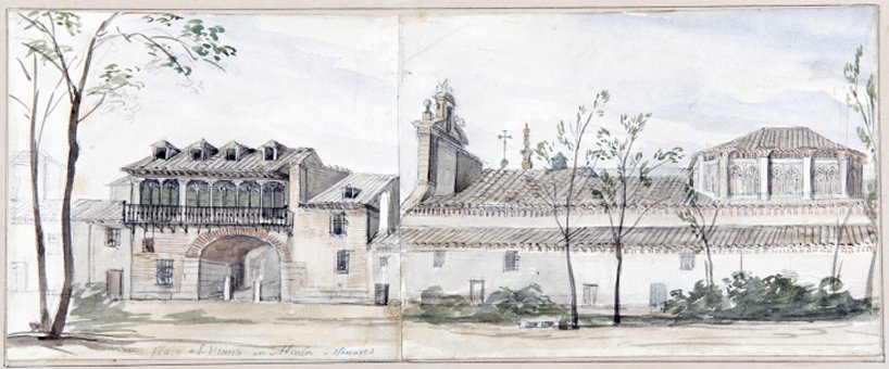 Número de catálogo 9.712 y sin duda el más interesante de los cuatro dibujos, no sólo por la categoría del monumento representado -el antiguo convento franciscano de San Diego-, sino también porque es la única representación gráfica del mismo de la que disponemos. Se trata de un dibujo a lápiz negro de 120 milímetro de alto y 168 de ancho, y la palabra demolido tuvo que ser añadida por su autor con fecha posterior a 1859, año en el que se perpetró el desaguisado construyéndose en su solar el cuartel del Príncipe.