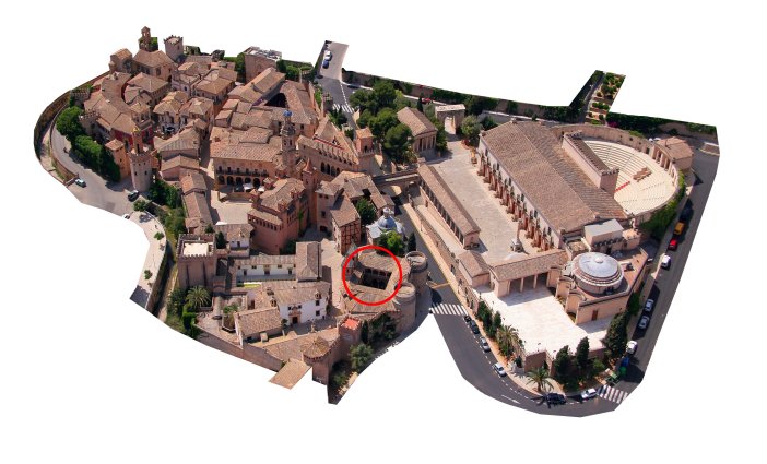 aérea del recinto del Pueblo Español. El Patio de Fonseca esta