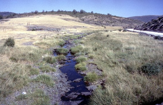 La primera parte del viaje será, pues, descansada y relativamente cómoda, sin más obstáculo que los manantiales y regatos que surgen por doquier atravesándose en el camino de un viajero atónito ante tan inesperado espectáculo en plena canícula estival; que el agua mane con tal abundancia, aunque sea en cantidades mínimas, a mitad del mes de agosto y tras dos años de sequía que los medios de comunicación no se coartan en calificar de pertinaz, le parece al viajero un pequeño milagro en mitad de la tradicionalmente árida Castilla. Pero la sierra de Ayllón a la que pertenecen estos parajes demuestra ser capaz de valerse perfectamente por sí misma, aun en condiciones climáticas tan poco favorables, para admiración de un viajero que por un momento cree haber sido transportado a regiones más norteñas de pluviosidad mucho más favorable.