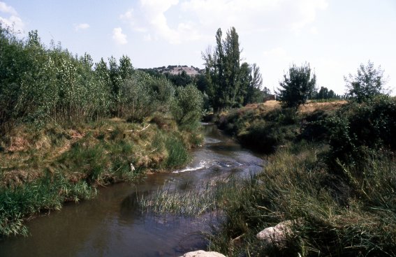 Todavía tendrá ocasión de atisbar el viajero otras dos veces el curso del Regacho aguas arriba de Santiuste, la primera en Riofrío del Llano y la segunda en la bifurcación de la carretera que conduce a Sigüenza, pero en ambos casos su curso anónimo, que apenas se atreve a arañar tímidamente la paramera y carente incluso de escolta vegetal, no será digno de mayor atención a causa de su extremada modestia. El Regacho no se hace mayor hasta que se decide a excavar su propio valle ya en las cercanías de Santiuste, y si bien sus inicios decepcionarán al viajero, éste ha de convenir que el modesto tributario se redime finalmente cuando ofrece generoso sus caudales a un Salado que se ha visto privado de los suyos propios a causa de la avidez humana, que bien está lo que bien acaba.
