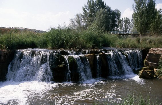 Y no será eso lo que más le llame la atención si, aguzando el oído, busca el origen del sordo rumor que se percibe hacia el otro lado, aguas abajo del pequeño puente que en este lugar salva su curso: a muy pocos metros de distancia, y parcialmente velada por la abundante vegetación que festonea las riberas, podrá el viajero descubrir una pequeña e interesante cascada por la que el Salado despeña sus bulliciosas aguas con un ímpetu tal que parece como si quisiera desmentir la modestia de su origen, mostrando con lujuria la totalidad de sus acuáticos poderes.