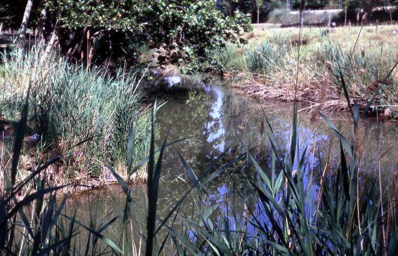 Pero es ya poca, muy poca, la vida que le queda en este lugar al gentil riachuelo que fluye mansamente a los pies del viajero antes de rendir sus cansadas aguas al ya cercano Henares. Son tan sólo algunos centenares de metros los que lo separan de su desembocadura, tramo postrero que recorrerá el Cañamares describiendo pequeños meandros entre el abundante arbolado antes de llegar por fin a su meta, un discreto final en el que el Henares no se molestará siquiera en acechar a su humilde tributario limitándose simplemente a recoger su modesta contribución sin inmutarse siquiera, pareciendo como si despreciara al pequeño riachuelo que aquí calladamente se le reúne.