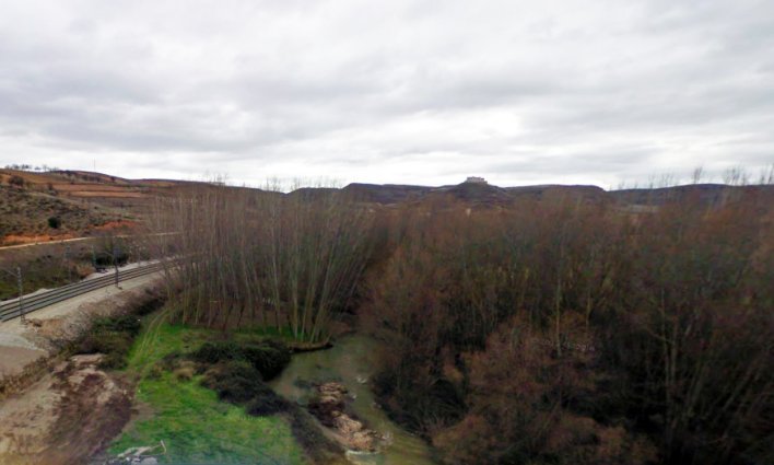 La segunda alternativa, irrealizable hasta hace pocos años, es la de continuar por el nuevo tramo que prolonga a la carretera CM-101 hasta alcanzar la rotonda en la que ésta confluye con la antigua vía -en su día llegó a ser carretera nacional- que conduce hacia Atienza y los altos páramos sorianos de Barahona. De esta rotonda arranca también la ruta que remonta el valle del Henares en dirección a Bujalaro y Matillas, pero esta última corresponde ya a una etapa distinta. A mitad de camino entre ambas rotondas se interpondrá el curso del Henares estrechamente escoltado por el tendido del ferrocarril, doble obstáculo salvado de una vez por la carretera merced a un airoso viaducto de casi doscientos metros de longitud convertido por méritos propios, ya desde el mismo instante de su nacimiento, en la mayor obra de ingeniería existente en estas tierras. La obra es ciertamente impresionante, pero la ausencia de un arcén impide detenerse al viajero, tal como éste hubiera deseado, viéndose limitado a atisbar fugazmente la verde hondonada por la que discurren de la mano tren y río. Y de allí a Jadraque, aunque esta etapa final pertenece también a otra jornada.