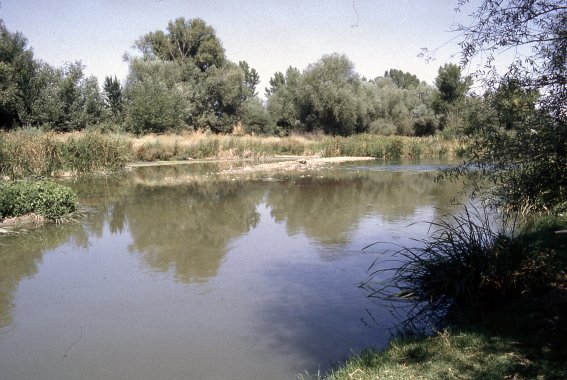 Por lo demás, el lugar es una amplia balsa, amplia incluso para el seco estío, en la que la orilla del Henares se adorna con una fresca pradera salpicada con algunos, no demasiados, árboles jóvenes. El lugar es placentero y lo sería aún más si no fuera por la al parecer inevitable contaminación que castiga a los dos ríos independientemente de las promesas políticas de limpiarlos; y, al menos a ojos del viajero, la competición tiene tan sólo un ganador por más que en los mapas se afirme lo contrario: el Henares, al que el viajero imagina viajando hasta Aranjuez antes de entregarse en brazos del padre Tajo. Pero como no es su intención la de polemizar, se conformará con dar por terminados en este lugar sus viajes considerando que el Henares legal -el real es otra historia- concluye aquí definitivamente su periplo vital.