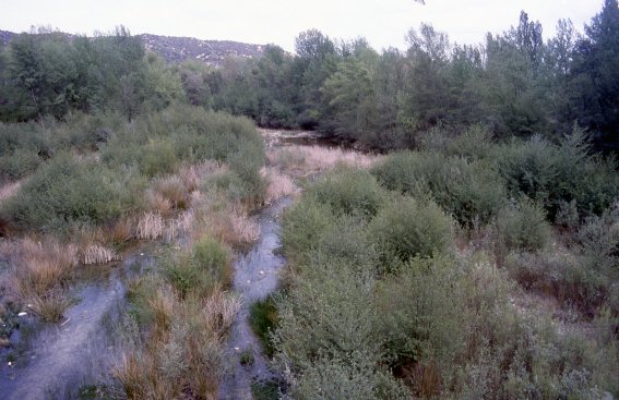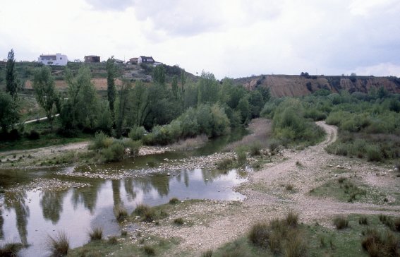 Pasado el breve cauce del río el viajero verá como el lecho de la vaguada, árido y arenoso y apenas poblado por unas ralas junqueras, se extiende durante una considerable extensión de terreno antes de perderse en una cerrada arboleda que al pronto excitará su imaginación: ¿Discurrirá por allí un segundo brazo del río que le pueda redimir de su triste condición? Y, aunque durante un momento alentará esta esperanza, la realidad se mostrará finalmente mucho más prosaica: No, no hay allí ningún río, no hay tan siquiera nada que se parezca a un cauce siquiera seco... Aunque la frondosidad del lugar y la abundancia de junqueras parecen indicar que el agua, subterránea en esta ocasión, no debe de andar muy lejana, lo que supone, siquiera a título simbólico, una pequeña compensación.