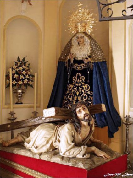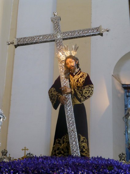 abrazado a la Cruz de Écija (izquierda) y Jesús