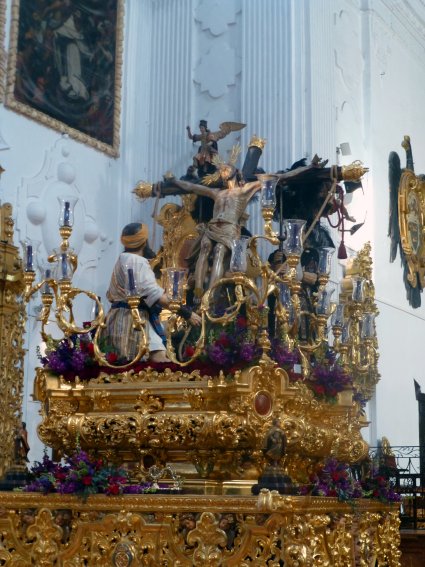 Les llega ahora el turno a dos pasos de misterio previos a la representación de Cristo crucificado, la Crucifixión y la Exaltación en la Cruz, rememorando esta última el momento en el que la cruz es alzada tras haber sido clavado Jesús en ella.