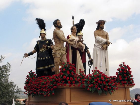 Al gobernador romano no le cupo entonces otra opción que la de juzgarlo, declarándole culpable y condenándolo a ser crucificado. Aprovechando la tradición de indultar a un condenado durante la Pascua judía, ofreció a la plebe la elección entre Jesús y Barrabas, optando ésta como es sabido por el segundo. Aunque no se trata de una representación iconográfica habitual, el paso de La Sentencia refleja este episodio en la Semana Santa de Hellín.