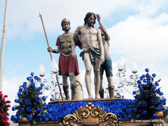 Tras la Flagelación llega el Ecce Homo, episodio en el que Jesús, tras ser azotado y coronado con espinas, es mostrado por Poncio Pilatos al populacho. En la imaginería de Semana Santa se suele representar a Jesús con una corona de espinas, una capa y una caña a modo de burlescos atributos reales y en ocasiones con una soga atada al cuello, por lo que popularmente se le suele conocer como Cristo de la Caña. Puede aparecer de pie o sedente, en este último caso a modo de remedo de un rey sentado en su trono.