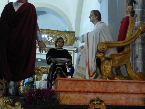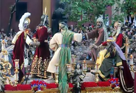 Inmediatamente después vendría el conocido gesto de Pilatos lavándose las manos al no querer hacerse responsable de tan injusta sentencia, tal como está representado en Jesús ante Pilatos, uno de los pasos de la Semana Santa de Jerez de los Caballeros.