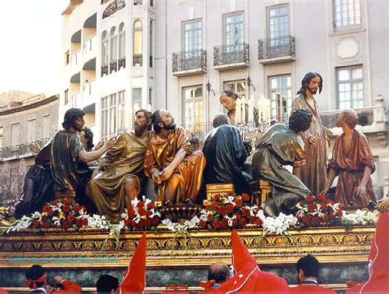 Así, siguiendo el orden cronológico propio de la Pasión y saltándonos la ya existente entrada en Jerusalén el Domingo de Ramos -o la Borriquita-, nos encontramos en primer lugar con el Lavatorio de los pies, que tuvo lugar como preámbulo a la Última Cena la noche del Jueves Santo.