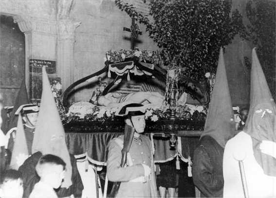 Según me ha explicado don José Moro él y sus compañeros iban al convento de las Juanas a recoger la imagen y la llevaban al de las Úrsulas, de donde partía la procesión a las seis de la mañana de la madrugada del Viernes Santo acompañando al Cristo de la Agonía. Dado el lugar en el que aparecen, al principio de la calle de Santa Úrsula junto al convento del Carmen Calzado, y al hecho de que ya fuese de día, ésta tuvo que ser tomada una vez finalizada la procesión. Lamentablemente no tuvo continuidad ni ninguna de las cinco cofradías existentes entonces se hizo cargo de la imagen, que acabó arrinconada en el convento de las Úrsulas durante dos décadas antes de que la Adoración Nocturna se hiciera cargo de ella tal como expondré más adelante.