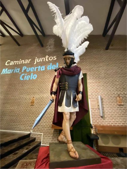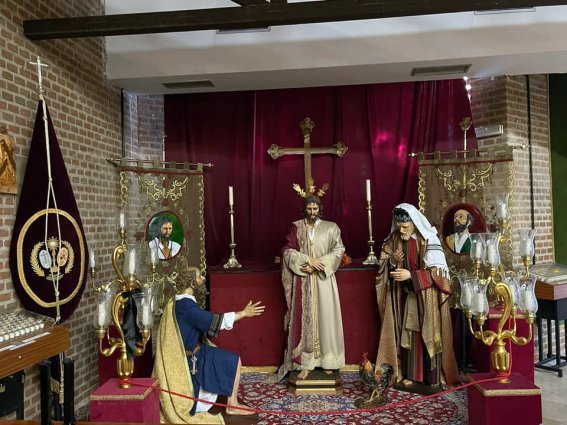 Aunque sin relación directa con las procesiones de Semana Santa, es necesario reseñar el incremento del patrimonio escultórico complutense con dos imágenes de crucificados, una nueva y la otra recuperada. El 11 de marzo de 2023 tuvo lugar la bendición del Cristo del Amor, una impresionante talla de Manuel Martín Nieto encargada por el Oratorio de San Felipe Neri, en cuya iglesia quedó instalada. La otra es el Cristo Agonizante, una réplica del Cristo de los Doctrinos que durante muchos años presidió la desaparecida capilla del Instituto Complutense cuando éste estaba ubicado en el Colegio de San Pedro y San Pablo, junto a la Universidad. Cuando el instituto se trasladó en 1977 a su sede actual la imagen pasó por distintos paraderos antes de ser trasladada en 1984 a la Capilla de San Ildefonso, donde permaneció hasta que fue retirada en 2010 y arrinconada en un almacén del Cuartel del Príncipe. Finalmente, gracias a las gestiones de José María Vicente Heredia fue cedida por la Universidad a la parroquia de Santo Tomás de Villanueva, tal como éste explicaba en un reciente artículo1 publicado en la prensa local. La imagen, tallada en los Talleres Granda a mediados del siglo XX, tiene suficiente calidad para merecer con creces este destino.