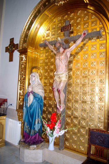 Convento de la Imagen. Crucifijo y Virgen Dolorosa (izquierda) y detalle de Virgen Dolorosa (derecha) |
