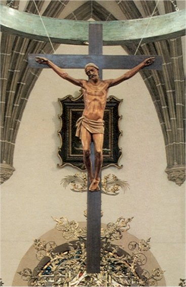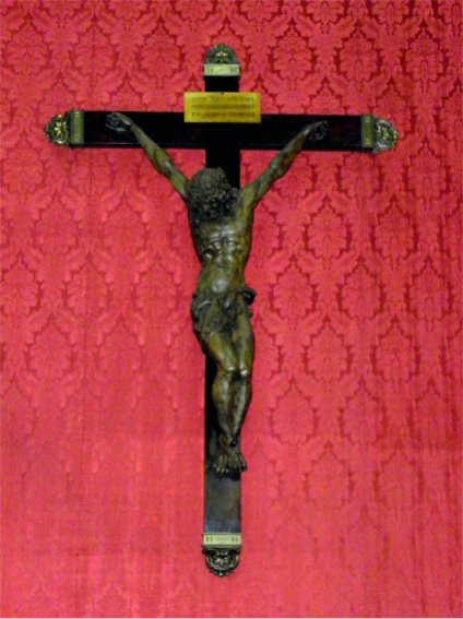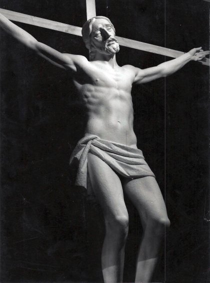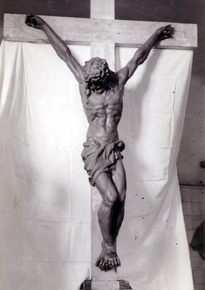 El crucifijo que se conserva en la parroquia de Santa María hubo de ser, pues, un modelo previo a escala natural, probablemente realizado en barro o escayola y policromado por el propio autor. Que yo sepa nunca ha participado en los desfiles procesionales de la Semana Santa, algo fácil de entender dada la fragilidad del material en el que está realizado, lo que no impide que su valía artística sea notable incluso tratándose de un simple boceto.