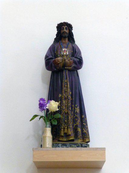 Además de las tres tallas de Jesús de Medinaceli que procesionan en Semana Santa, la del convento de las Úrsulas y las dos de la cofradía, en la parroquia de San Isidro se venera esta pequeña imagen -tendrá alrededor de un metro de altura- que nunca ha salido en procesión ni cabe prever que lo haga, dado lo reducido de su envergadura.