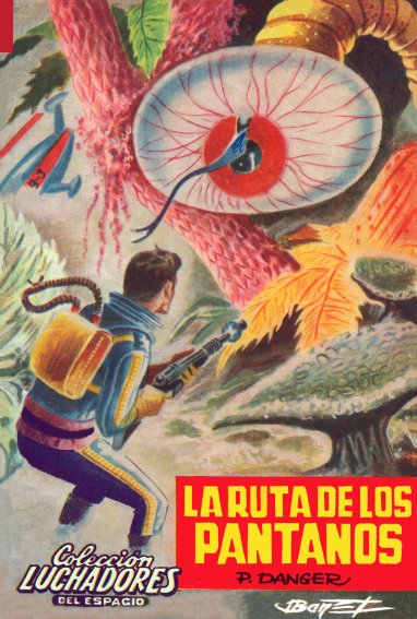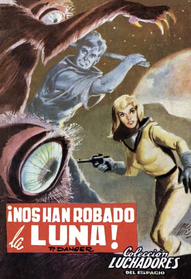 Fue entonces cuando el número 151, titulado ¡Nos han robado la Luna!, apareció firmado por un tal P. Danger, un nombre (o mejor dicho, un seudónimo) nuevo en esta colección. A partir de entonces P. Danger, es decir, Domingo Santos, publicó un total de doce novelas, distribuidas de una forma muy regular por toda la colección hasta la desaparición de ésta en 1963. Claro está que el todavía inexperto P. Danger de Luchadores del Espacio no era ni mucho menos el Domingo Santos de su producción clásica; pero justo es reconocer que, pese a todo, sus novelas tuvieron por lo general un nivel más que aceptable dentro del conjunto de la colección. De hecho, Domingo Santos fue uno de los principales pilares de la misma durante su etapa final y, si en algunos momentos su producción flojea, no ocurre nada diferente con el resto de sus compañeros que tuvieron también sus propios altibajos. A un escritor novel, ciertamente, no se le podía exigir demasiado más.