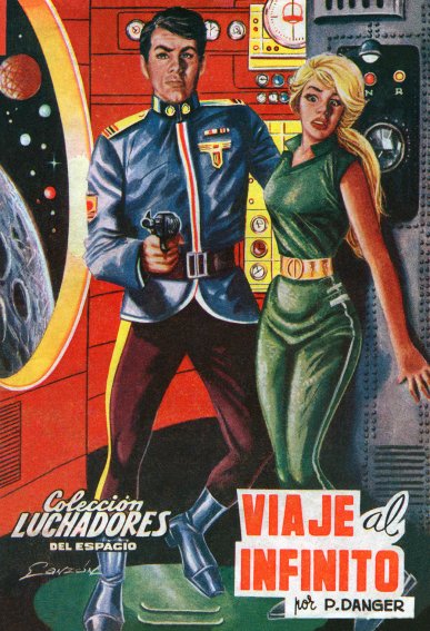 La actividad literaria de Domingo Santos en Luchadores del Espacio se simultaneó, hecho éste poco frecuente en el ámbito de las novelas de a duro, con la publicación de otras cuatro novelas en Espacio, la colección futurista de la editorial Toray rival de la de Valenciana, las cuales fueron firmadas como Peter Danger la primera y como Peter Dean (las editoriales solían exigir seudónimos exclusivos, y el primero de ellos se parecía demasiado al de Valenciana) las tres restantes. No fue una contribución demasiado significativa en el conjunto de esta colección, mucho más longeva además que Luchadores, pero sumando estos cuatro títulos a los doce anteriores podremos conocer mejor la cantera donde se forjó nuestro autor.