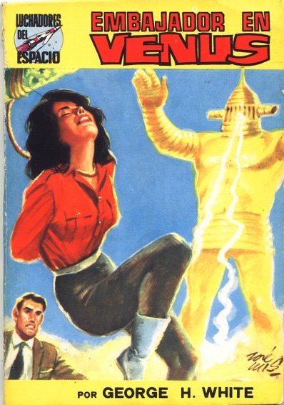 Comencemos con la narración. Venus ha sido visitado por los terrestres hace unos cuantos años y rápidamente han comenzado a emigrar a él millones de desharrapados hambrientos que se encuentran con un planeta virgen lleno de selvas tropicales y dinosaurios tal como mandan los tópicos de la colección... Y habitado por una raza humana poseedora de una cultura refinada pero carente de la más mínima tecnología. Aún más, los venusianos aborrecen con un fanatismo casi religioso todo cuanto pueda suponer el menor avance técnico.