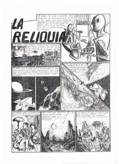 La historia de este cómic, el más antiguo y también el más largo de todos ellos, es curiosa. Allá por octubre de 1983, y ya ha llovido desde entonces, José Luis García Abad me pidió un guión para dibujar una historieta gráfica que quería presentar a un concurso. Así lo hice, eligiendo como base el relato La reliquia que había escrito poco antes. Sobre mi guión él dibujó el cómic, lo presentamos al concurso... y no ganamos. No obstante, en abril de 1985 conseguimos publicarlo en el número 1 de Quijotex, una efímera revista dirigida a los jóvenes editada por el Ayuntamiento de Alcalá de Henares. Y ahí quedó todo; lamentablemente, he perdido el rastro de José Luis.
