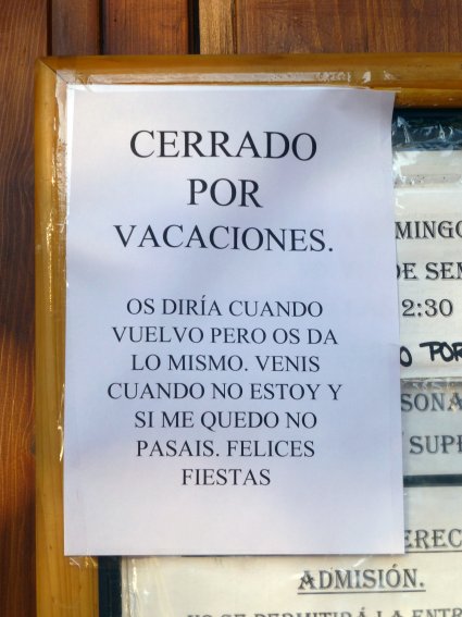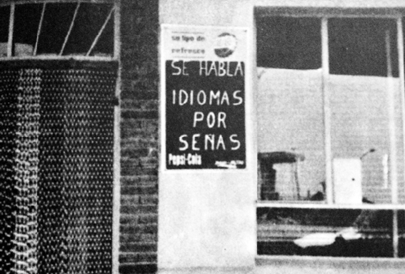Encontré este cartel, en enero de 2022, en el escaparate de un bar de Alcalá de Henares cuyo dueño, cabe suponer, procedía de este país sudamericano. Cuando lo vi me recordó la divertida fotografía que reprodujo Luis Carandell en su descacharrante Celtiberia Show, en la cual aparecía la pizarra de un bar donde se indicaba que allí se hablaba idiomas por señas.