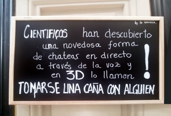 En mis andanzas por los distintos rincones de España suelo encontrar de vez en cuando frases sin el menor desperdicio escritas en las pizarras colocadas a la puerta de los bares. Éste es el caso de la que descubrí en la localidad lucense de Chantada durante mis vacaciones en agosto de 2018; y pese a no ser la primera, fue tal la rotundidad de su mensaje que me llamó poderosamente la atención.