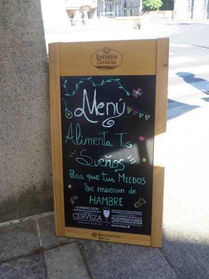 Un mes antes, en julio de 2025, descubrí esta pizarra en un bar de Verín, una agradable localidad orensana en la que paré durante unas vacaciones en Galicia. Tal como se lee, proponía un menú de índole espiritual que resultaría muy conveniente seguir; imposible concretar más con menos palabras.