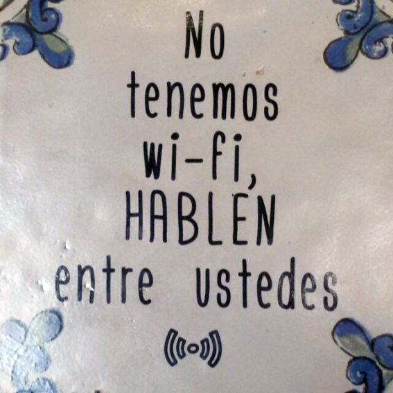 Volviendo a nuestro tema, y aunque es mucho lo que se podría hablar sobre éste, prefiero limitarme a reproducir el irónico mensaje que aparece en el azulejo que ilustra este comentario, que en su socarronería tiene más razón que un santo. Desconozco de donde procede ya que se trata de un fotografía que encontré en septiembre de 2016 en internet, pero supongo que estará tomada en un bar o un establecimiento similar. Y, aunque no se trate de una pizarra escrita, merece por derecho propio ser recogida aquí.
