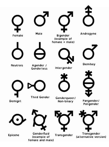 Véase, a modo de ejemplo, el gráfico que reproduzco bajo el título, copiado de www.asexuality.org, aunque no deja de ser chocante que una asexualidad pueda tener tantas variantes sexuales... en fin. Lo cierto es que sus autores reproducen un total de dieciséis pictogramas derivados de los tradicionales ♂ y ♀, entre los cuales curiosamente no aparecen ni el de los gays ni el de las lesbianas. En cualquier caso me parecen una exageración, y eso que todavía podría aumentar su número en un futuro si a alguien se le antojara incluir, pongo por ejemplo, la zoofilia o cualquier otra variante sexual no tipificada. Ya puestos...