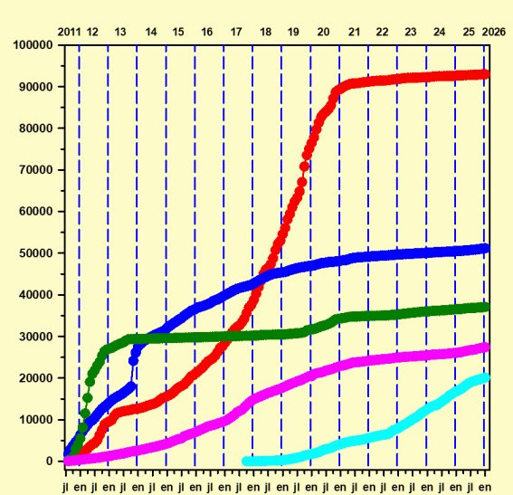 Éstos son, al día de hoy, los cinco artículos más populares de mi página. La gráfica representa las visitas acumuladas a todos ellos desde agosto de 2011 hasta la actualidad, mientras la tabla recoge el número total de estas visitas. Pulsando sobre los títulos se puede acceder directamente a su lectura.