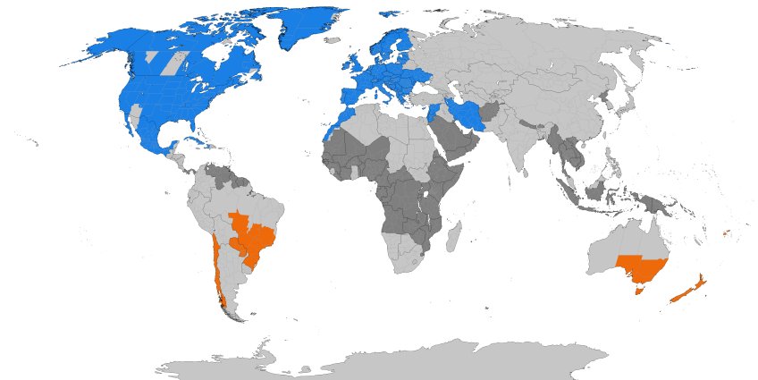 Fuera de Europa y del ámbito anglosajón -Canadá, Estados Unidos, Australia y Nueva Zelanda- el horario de verano está muy poco extendido, siendo mayoritarios los países que hacen caso omiso tanto en Asia -tan sólo lo aplican Israel, Siria Líbano, Jordania e Irán como en África -Marruecos es la única excepción- y las dos Américas, en las que México, Cuba, Haití, Chile, Paraguay y Brasil, junto con algunas islas menores, son los únicos que lo cambian. Teniendo en cuenta que quedan fuera de esta iniciativa países de la importancia de Rusia, Turquía, China, India, Japón, Corea, Taiwán, Pakistán, Indonesia, Malasia, Irak, Egipto, Argelia o la República Sudafricana, resulta difícil creer que puedan estar equivocados en tantos sitios.