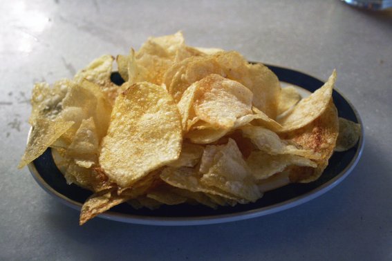 Sorprendente no por los valores, sino porque la cantidad de sal era exactamente la misma en las dos modalidades de patatas fritas. Para enredar más las cosas los comparé a su vez con unas terceras patatas fritas, también de marca blanca pero de una cadena diferente de supermercados y elaboradas en otra fábrica, rotuladas en esta ocasión como Clásicas a la antigua, presentadas también en la consabida bolsa de papel. Aquí la proporción de aceite y de patatas, y por consiguiente de calorías variaba ligeramente como cabía esperar, mientras la cantidad de sal era incluso algo inferior, en concreto de 1 gramo por cada 100 de producto. Por su parte, en una cuarta marca blanca Tipo churrería la sal se reducía a tan sólo 0,64 gramos.