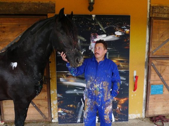 ¿Todavía no se han quedado suficientemente sorprendidos? Pues sigo. En realidad el noble bruto, que utiliza la boca como extremidad prensil, trabaja a medias con otro artista, éste bípedo implume, que le ayuda en sus obras de arte, algo que bien mirado nada tiene de excepcional puesto que hasta los grandes de la pintura contaron con el auxilio de colaboradores. Los cuadros, firmados por ambos -al parecer Napoleón, en vez de estampar la huella del casco derecho, se limita a firmar por delegación-, están a la venta y no son precisamente baratos: entre 3.200 y 6.000 euros, que se reparten a medias entre ambos o, mejor dicho, entre el ayudante y el dueño del cuadrúpedo, que es el que se embolsa la pasta gansa -hasta ahora, que yo sepa, a los caballos no les dejan ser titulares de cuentas bancarias- y, según afirma, reinvierte las ganancias en beneficio del equino artista, es decir, en cuadras confortables y avena de primera calidad, aunque no dice nada acerca de lo que pasa con los caudales sobrantes.
