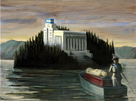 El pintor argentino Daniel Santoro (Buenos Aires, 1954) es autor de una serie de cuadros y bocetos para una película en los que se mezclan la simbología de Böcklin y elementos peronistas, en especial la figura de Eva Duarte, con las lápidas del cementerio sustituidas por el icónico edificio de la sede de la CGT de Buenos Aires. Son al menos cinco cuadros y media docena de bocetos, fechados entre 2001 y 2007, que dan una visión inquietante y muy personal de la mezcla de dos universos inicialmente tan dispares. Reproduzco dos óleos de 80 × 90 cm. y 70 × 50 cm. respectivamente, pudiéndose contemplar los restantes en su página web.