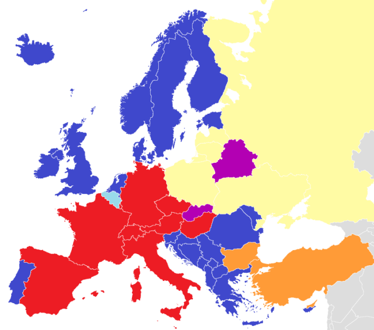 Los países restantes se reparten entre Turquía y Bulgaria, en los que como ya he comentado coexisten ambos sistemas, y Bielorrusia y Eslovaquia que se aprovechan de los doblajes, supongo que inteligibles para ellos, procedentes respectivamente de Rusia y de la República Checa.