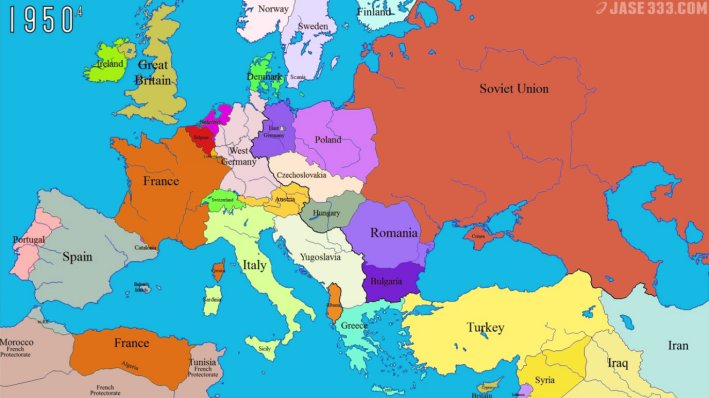 Una vez estabilizadas las fronteras el número de estados independientes, descontando de nuevo a los cinco microestados y a la efímera Trieste, descendió a veintiocho: España, Portugal, Francia, Holanda, Bélgica, Luxemburgo, Italia, Suiza, Gran Bretaña, Irlanda, las dos Alemanias, Dinamarca, Noruega, Suecia, Finlandia, Islandia, Austria, Polonia, Hungría, Checoslovaquia, Yugoslavia, Albania, Rumania, Bulgaria, Grecia, la Unión Soviética y Turquía.
