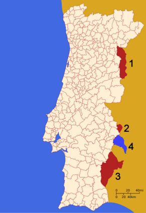 Mourão (3), actualmente portuguesas; y Olivenza (4), española