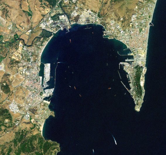 Algeciras, con Gibraltar a la derecha. Fotografía de la NASA tomada de